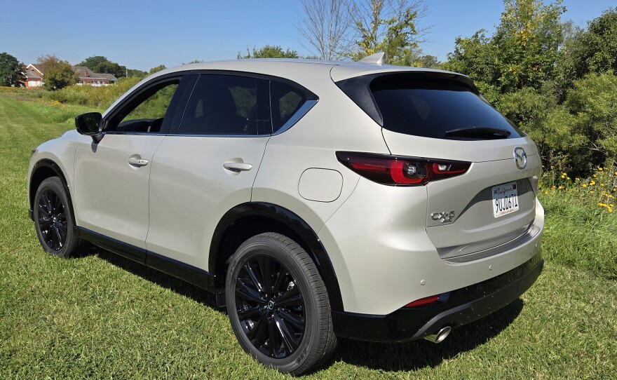 The tested near top-end CX-5 2.5 Turbo Premium was bathed in what it calls Platinum Quartz Metallic, a sparkling champagne, sort of between cream and tan, although it can look grayish at times too.