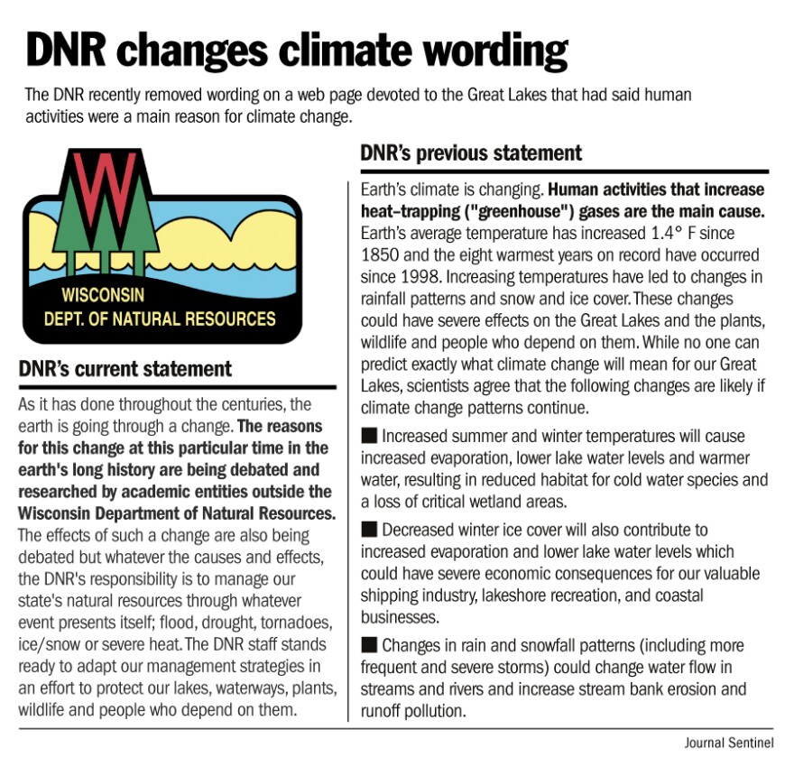 Recently changes on the agency’s website raised some eyebrows. The DNR quietly removed language that stated human activity is the main cause of climate change. In fact, the term “climate change” disappeared.