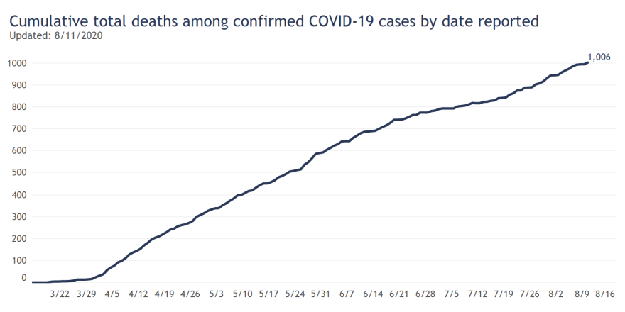 The state reported eight more deaths Tuesday, to push the number of deceased to 1,006.