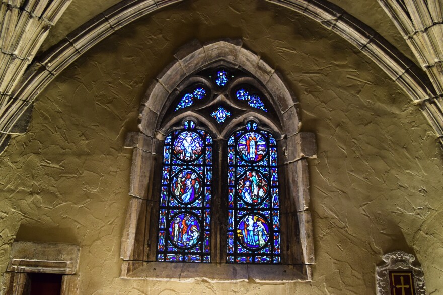 "He agreed to the commission, but he traveled to France for almost a year for two purposes: for inspiration from churches that Joan prayed at, or also from churches she may have prayed at that were around, and to study the art," says Newman. "But he also went to patrimony, exclusive warehouses in France, and purchased glass from medieval French churches so that the color would be authentic and identical to the colors, the blues, the reds, the greens that Joan had seen in the 15th century. Those were incorporated into the chapel in the 1920s, so the claim can be made, 'Joan saw those exact images.'"