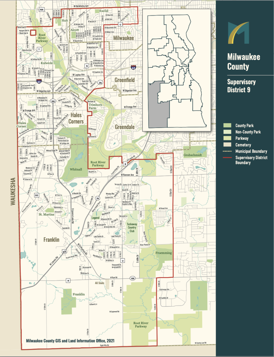 District 9 covers Franklin, Hales Corners, and some of Greenfield. If you are unsure of which district you live in, you can look up your ballot here.