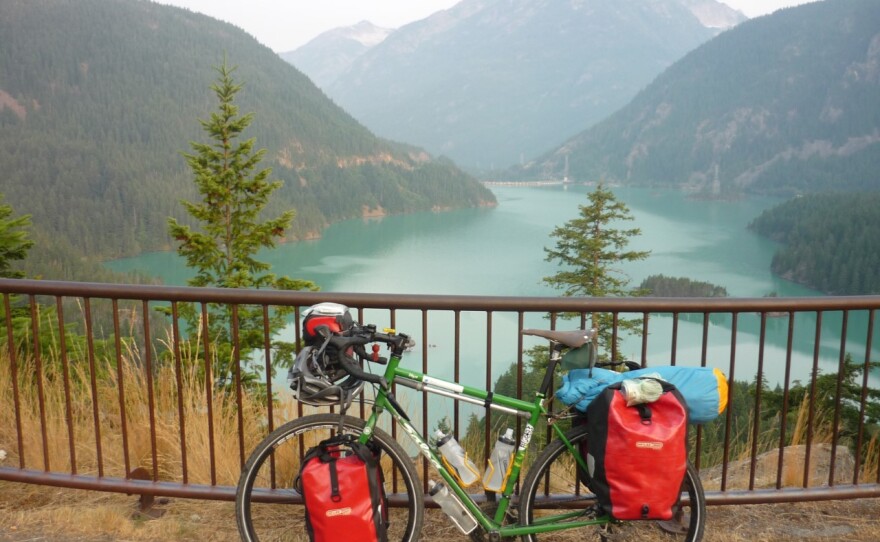 For a month, Howell loaded up his bike with fifty pounds of gear and rode his bike for up to 100 miles a day. His self-supported ride took him over the Cascades, through Glacier National Park and across the Great Plains.
