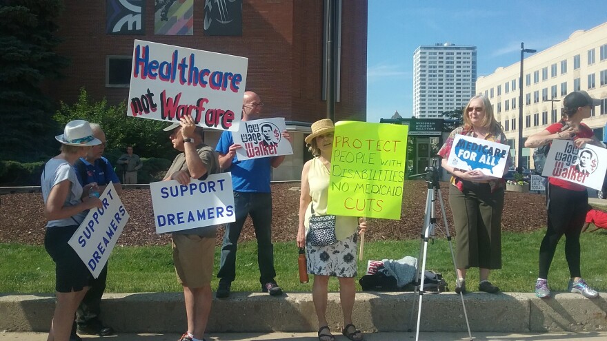 Just minutes after Air Force One landed at the 128th Air Refueling Wing, he gave a short speech on the tarmac about health care. Trump kept up the pressure on Congress to approve a plan to replace the Affordable Care Act.